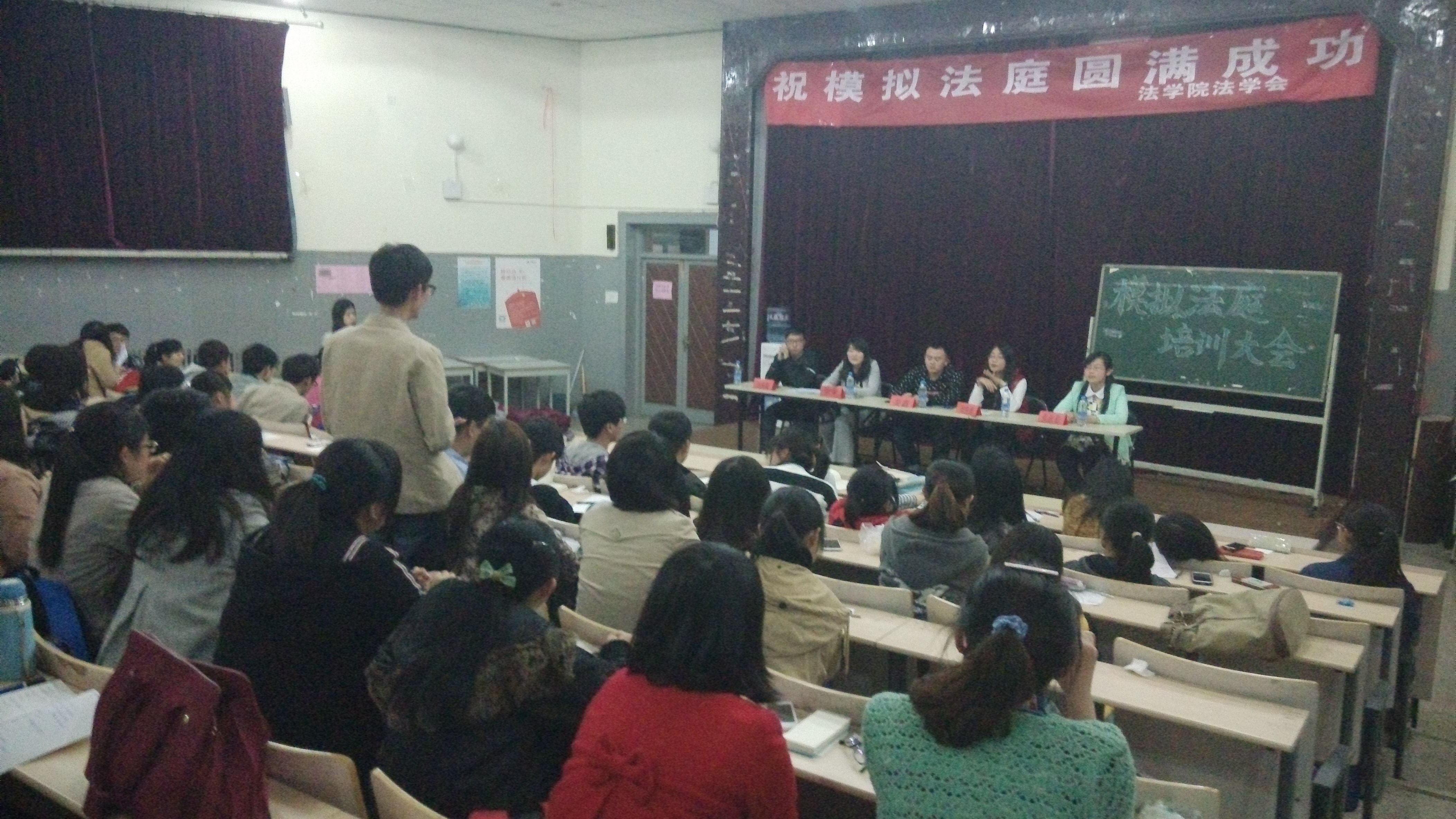 “模拟法庭”大赛是吃瓜网 法学会每年开展的特色活动之一。吃瓜网 代表队曾在省级比赛中屡获桂冠。为确保吃瓜网 优势的保持,学院第十一届法学会于前期在笃行楼举办了新一届队员选拔的“模拟法庭”培训动员大会。本次大会的应邀嘉宾有徐荣、姜鑫、刘艳萍、张淑易、刘禹隆等上届获奖代表。接受培训的则主要是吃瓜网 12级和13级的模拟法庭参赛人员及合议庭组成人员。