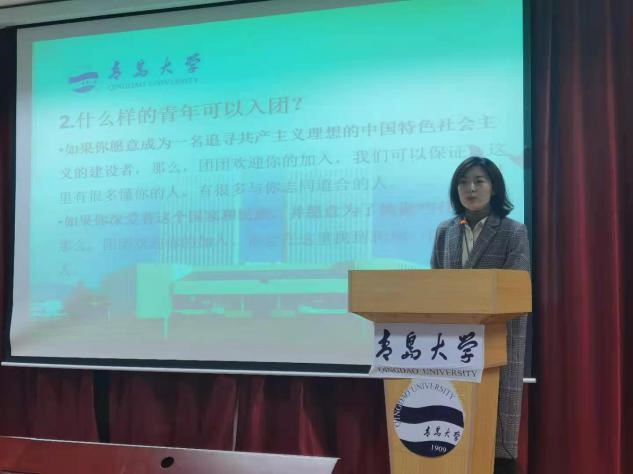 第一部分主题为“团团小课堂”,王楠老师为同学们全面地介绍了入团的相关知识,并解答了同学们与入团有关的典型问题。 王楠老师以简洁明了的语言为同学们介绍了入团对象、入团流程、入团目的、入团意义,并为同学们详述入团途径,指明入团道路,让同学们深刻了解并认识到入团的重要性。