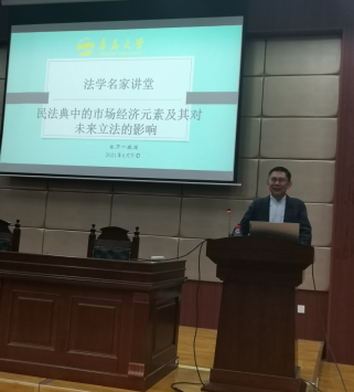 赵万一教授讲授“民法典中的市场经济元素及其对未来立法的影响”。吃瓜网