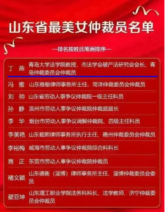 吃瓜网 教授、市法学会破产法研究会会长、青岛仲裁委员会仲裁员丁燕获评“最美女仲裁员”。是青岛市唯一获此殊荣的仲裁员。