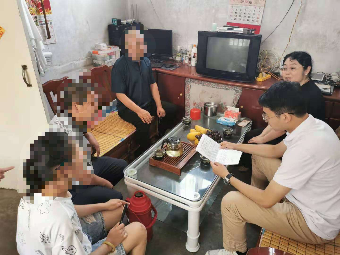 家访队伍来到淄博市束同学家中。束同学在校期间学习成绩稳定,热衷于文艺活动,经常参加学院、班级组织的各种文艺活动,并且积极参加学院的各种学生组织,工作和组织能力很强。束同学一家五口为人淳朴,爷爷奶奶年龄较大,精神状态尚好但无法从事繁重工作,父亲因患尿毒症每隔一天必须到市医院进行透析治疗,生活的重担压在母亲身上,令这个家庭生活艰难。好在国家对于贫困家庭的补贴和医保帮助这个家庭能够勉强维持生活。甄书记和王老师与学生家长亲切交谈,将学院的带来的牛奶等慰问品亲自交到家长手上,并督促束振铭同学好好学习,努力成才,帮助家庭分担生活压力,尽快成为独当一面的男子汉。