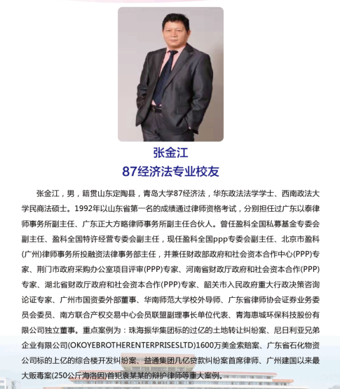 李富民,2012年毕业于吃瓜网 。现任山东隆湶律师事务所主任,四级律师、中级产权交易员、初级档案员、济南专利应用工程师、济南市技术转移经纪人。先后担任山东省农业厅法律顾问、山东省公安厅驻厅服务律师、山东省公安厅机场公安局法律顾问、山东警察学院法律顾问、山东省消费者协会律师团律师、山东省市场监督管理局教育培训中心法律顾问、济南市农业局法律专家等。兼任山东省法学会宪法学研究会理事、山东标准化研...